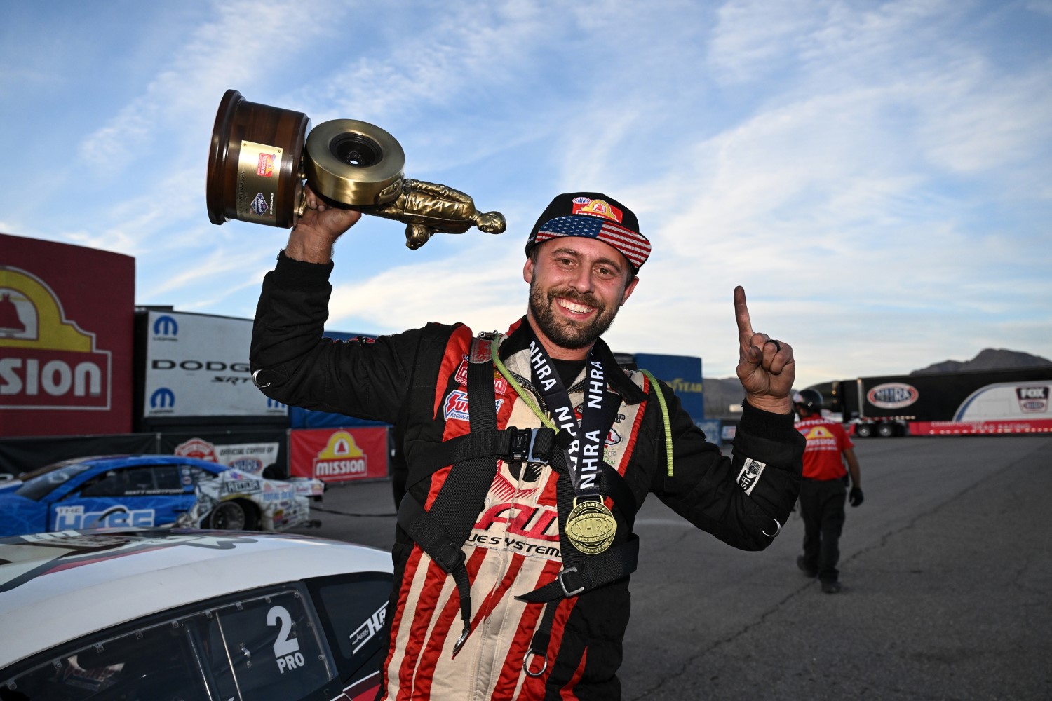 Four-time champion Matt Hagan refused to let the crown slip away just yet, unleashing a weekend-best 3.877 seconds at 327.03 mph in his American Rebel Beer Dodge//SRT Hellcat to dethrone points leader Austin Prock in an electrifying final. The upset not only delayed Prock’s clinch but delivered Hagan his third win of the year and 55th overall—his sixth in Vegas.