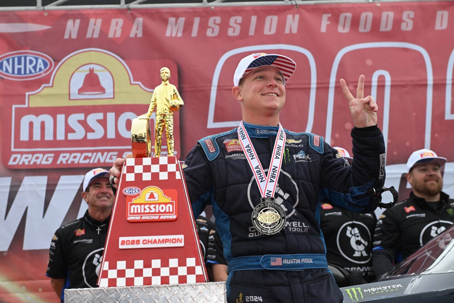 Prock and his tuning triumvirate — encompassing his father, Jimmy, brother Thomas, and Nate Hildahl — have now won championships in both of his seasons in Funny Car after moving over from Top Fuel, where his best career finish was third in 2022. After three-time world champ Robert Hight retired from driving the John Force Racing Funny Car, Prock moved into the saddle, inheriting his father as the architect.