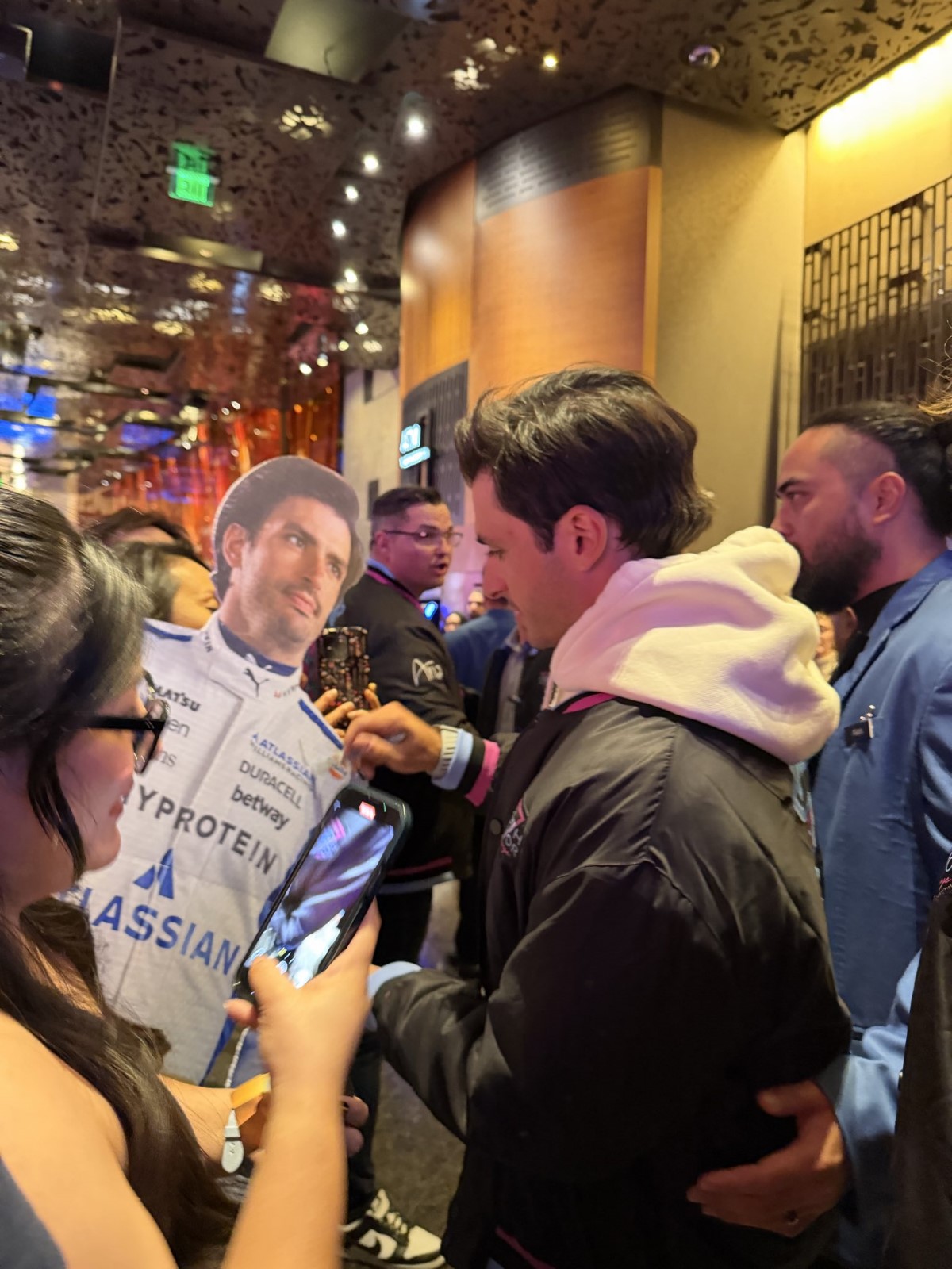 Willaims F1 driver Carlos Sainz Jr signs autograph for a fan ahead of the 2025 Las Vegas GP