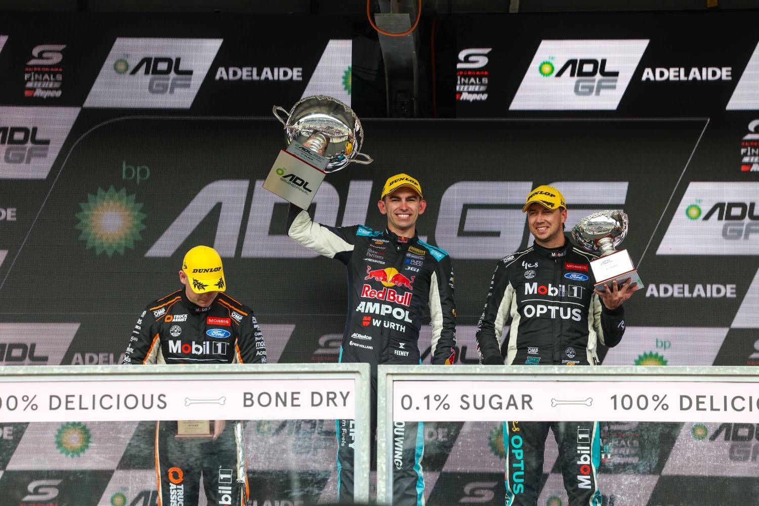 The Gold Coast youngster won today’s race at the BP Adelaide Grand Final, his 14th victory of 2025 — and, importantly, extended his slim points margin over Ford’s Mostert before Sunday’s final race of the year.
