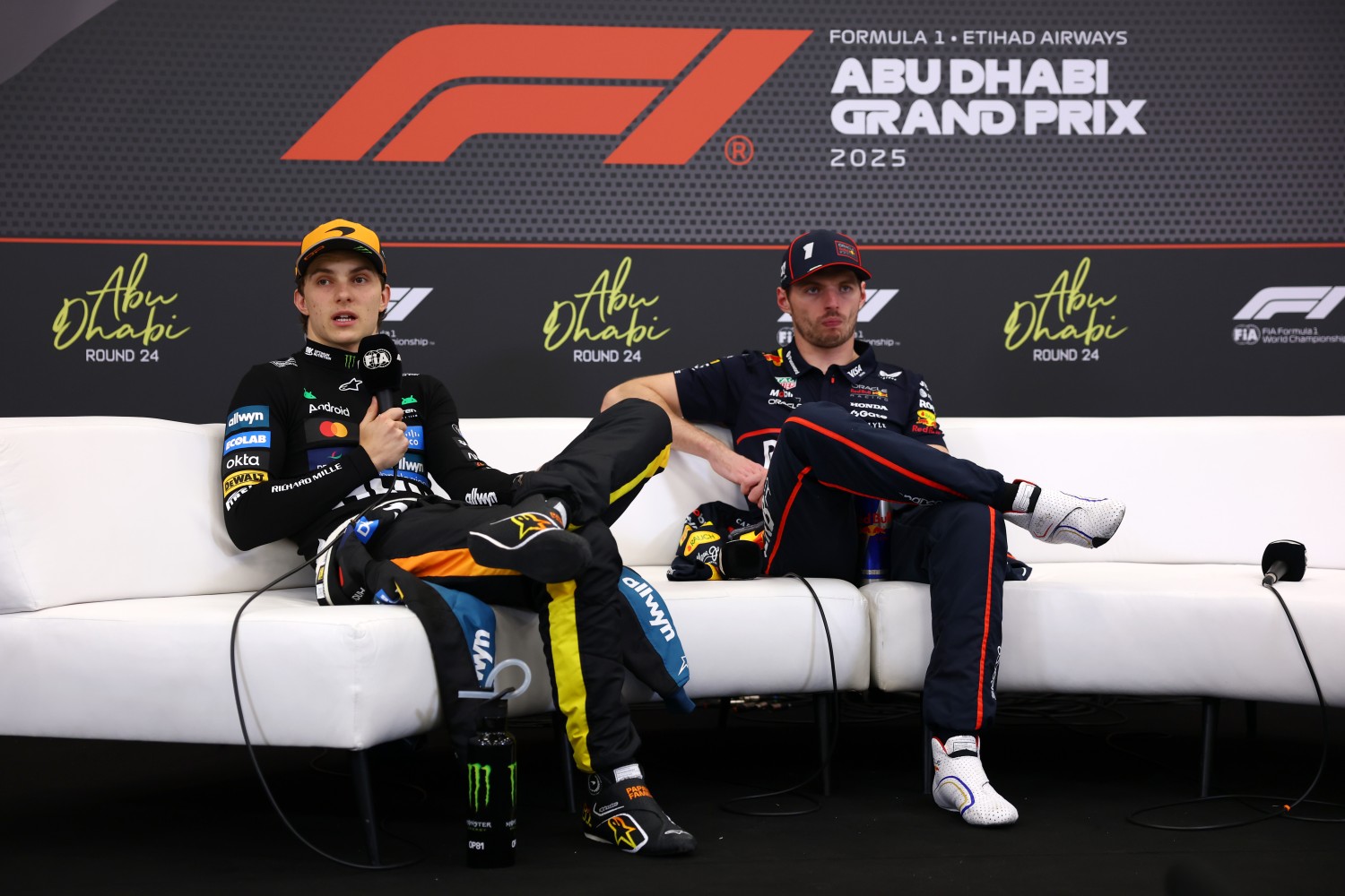 The post-race press conference for the 2025 Abu Dhabi Grand Prix, held on December 7, 2025, at Yas Marina Circuit, celebrated the Formula 1 season finale. It featured podium finishers Max Verstappen (Red Bull Racing, 1st), Oscar Piastri (McLaren, 2nd), and Lando Norris (McLaren, 3rd).
