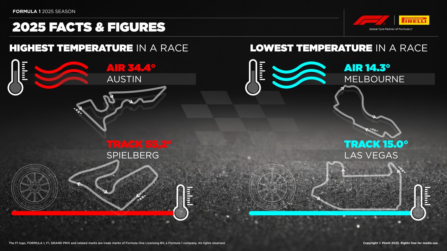This figure reflects one of the most demanding seasons in the history of the championship, after the calendar expanded to 24 races last year. On these 24 circuits, spread out over five continents, Pirelli had to deliver performance, reliability and adaptability in conditions ranging from the extreme heat of the Arabian desert to the biting cold of Nevada.