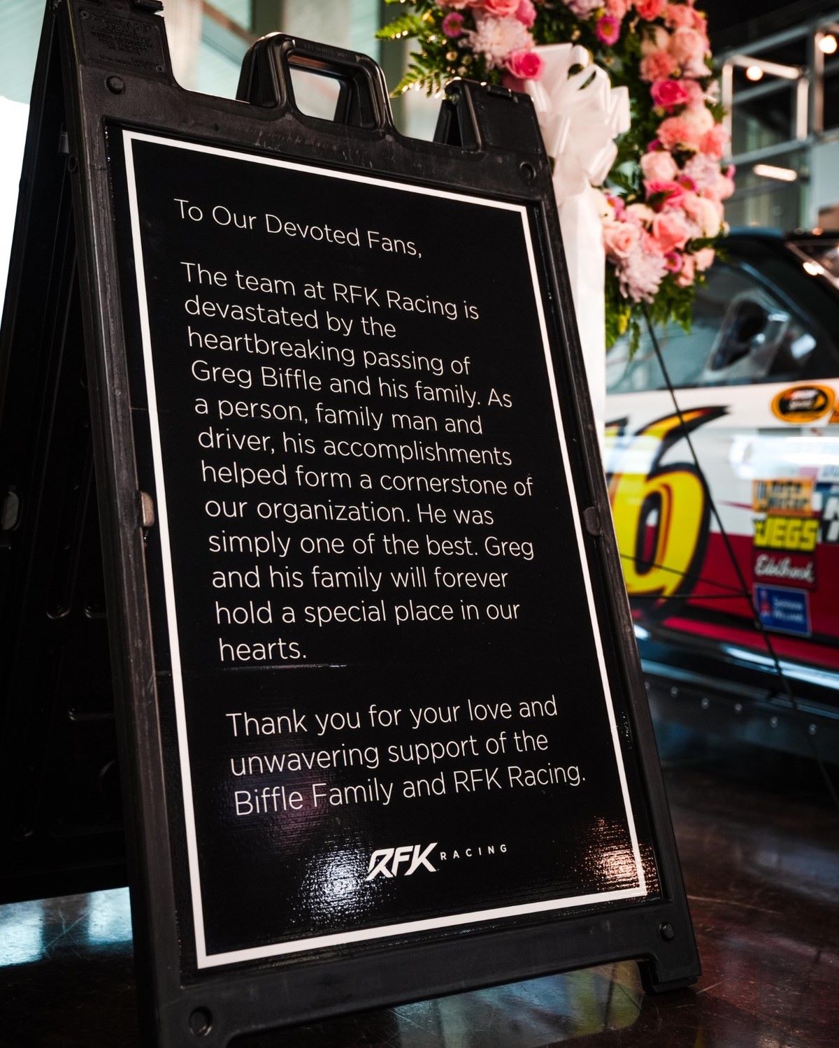 RFK Racing has added a new display at their museum in his honor. Various pieces from Biffle’s career are on display including a car, trophies, race suit, and photos.