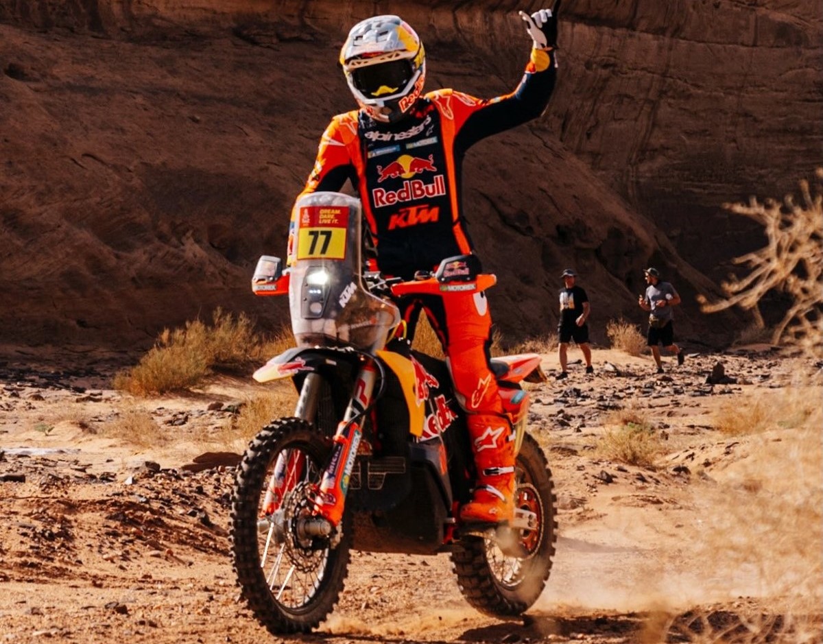 Red Bull KTM Factory Racing’s Luciano Benavides (#77) rode a perfect stage to claim victory, taking over the overall lead in dramatic fashion. Hero MotoSports’ Ignacio Cornejo (#11) finished a strong second, positioning himself as the closest challenger, while teammate Daniel Sanders (#1) completed a KTM-heavy podium. The marathon’s toll was evident, with previous Honda leaders dropping back due to time losses and penalties.