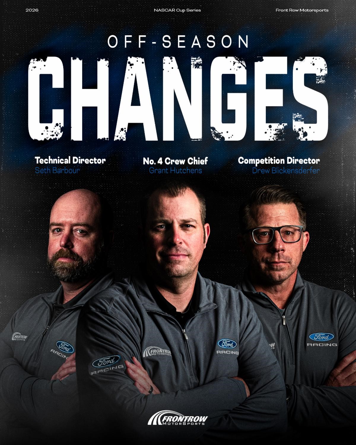 “We are very fortunate, and I am extremely excited to add experienced, talented people like Grant and Jonathan to leadership roles in the organization”, said Front Row Motorsports team owner, Bob Jenkins. “With the inclusion of our Truck Series teams, we operate (5) full-time teams and I’m equally as excited to have Drew turn his attention to providing direction and guidance to our crew chiefs and competition group as a whole. Having Drew in this new role for us and Seth being able to focus on the technical aspects within our team, it puts us in a better position to execute on the track and achieve our goals in 2026.”
