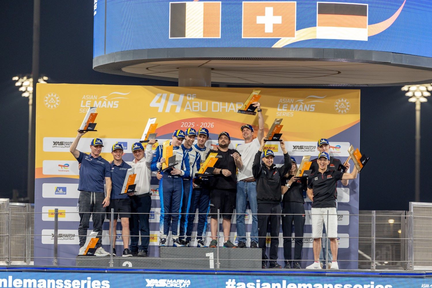 GT Season Champions: 1st Kessel Racing 2nd WRT, 3rd Manthey Racing crowned at the 2nd 4-Hours of Abu Dhabi race. Image supplied by the Asian Le Mans Series