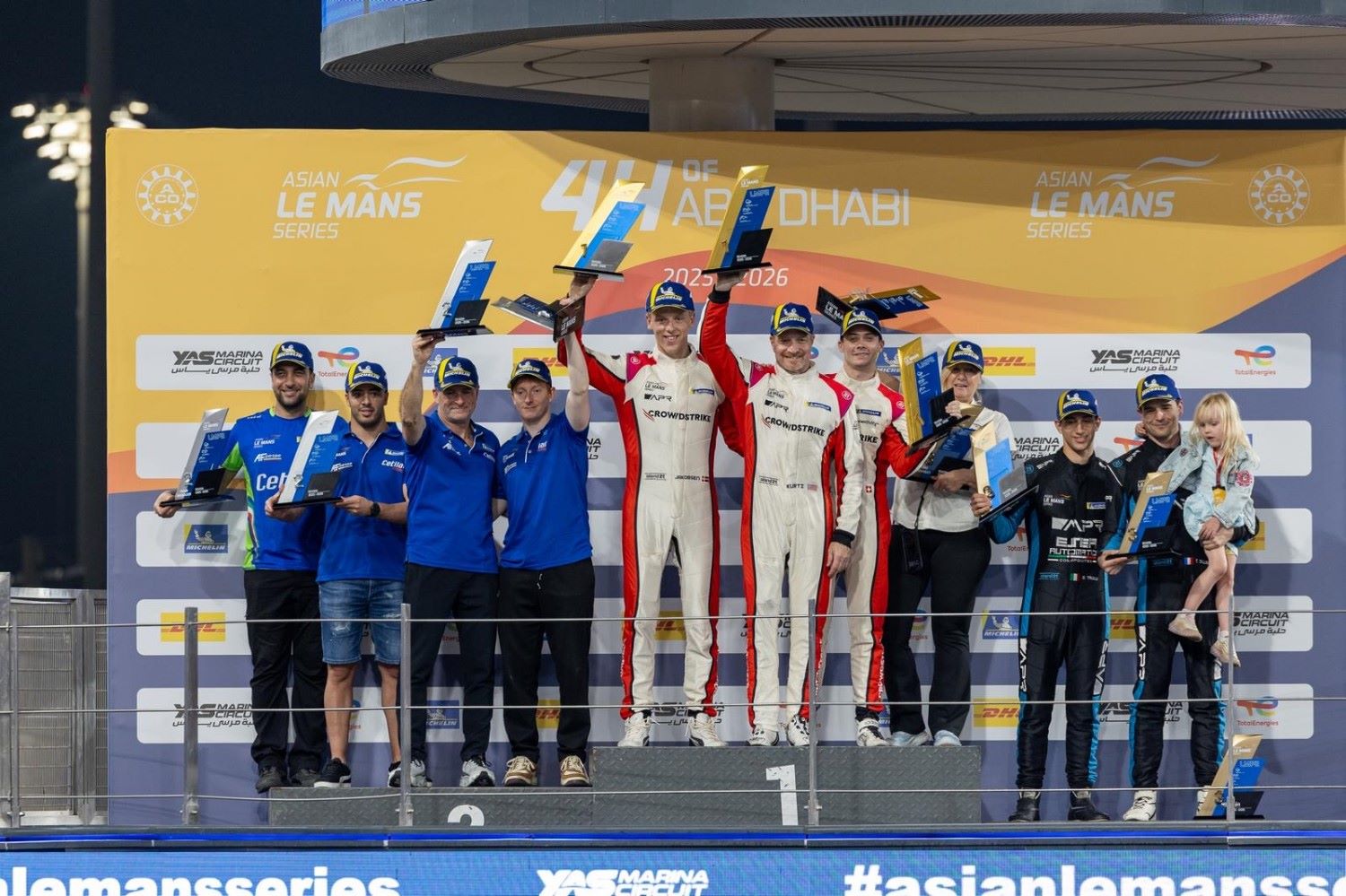 LMP2 season champions 1st Crowd Strike Racing, 2nd Cetilar Racing, 3rd AP Racing Team crowned at the 2nd 4-Hours of Abu Dhabi race. Image supplied by the Asian Le Mans Series