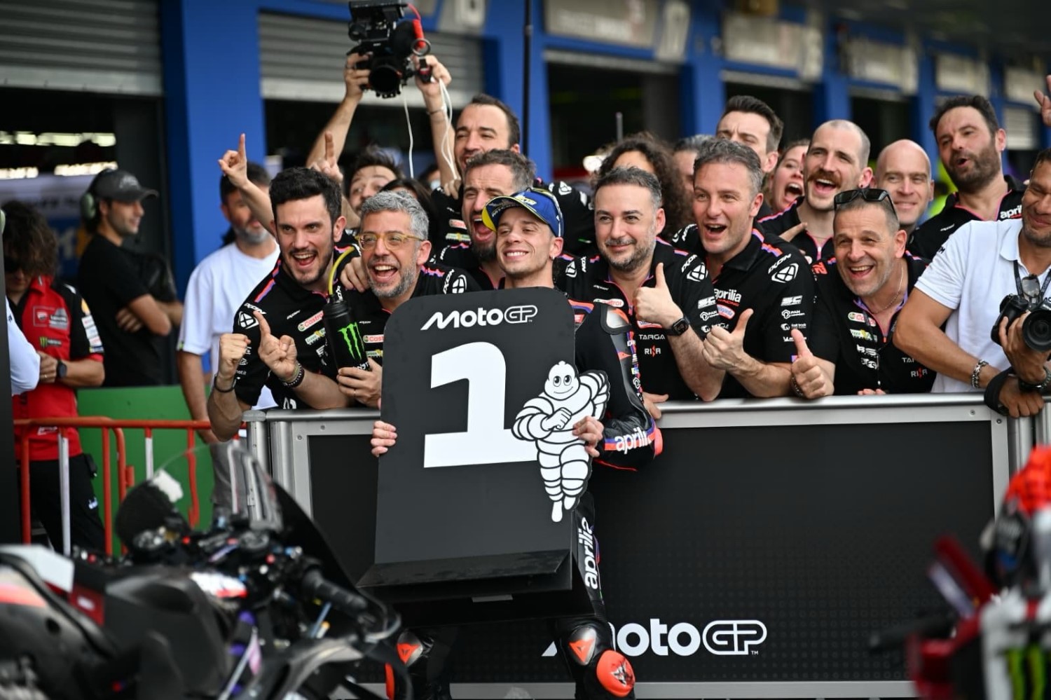 In Q2, the battle for pole intensified under the sweltering Thai sun. Bezzecchi, who had topped Friday’s practice sessions, carried his momentum forward, setting the benchmark early. However, Marc Marquez on the factory Ducati pushed hard, closing the gap to a mere 0.035 seconds with a 1:28.687. Fernandez, fresh from his Q1 heroics, rounded out the front row in third, making it two Aprilias in the top three—a promising sign for the Italian manufacturer. “It will be tough… but we are strong!” Bezzecchi reflected post-session, acknowledging the close competition while praising his team’s efforts.