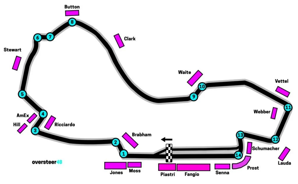 Nestled in a leafy parkland just minutes from downtown Melbourne, the semi-permanent Albert Park Circuit blends high-speed sweeps with heavy braking zones, where gravel traps and walls hug the track edges. Its temporary setup leads to significant track evolution over the weekend, often resulting in Safety Car deployments or red flags.