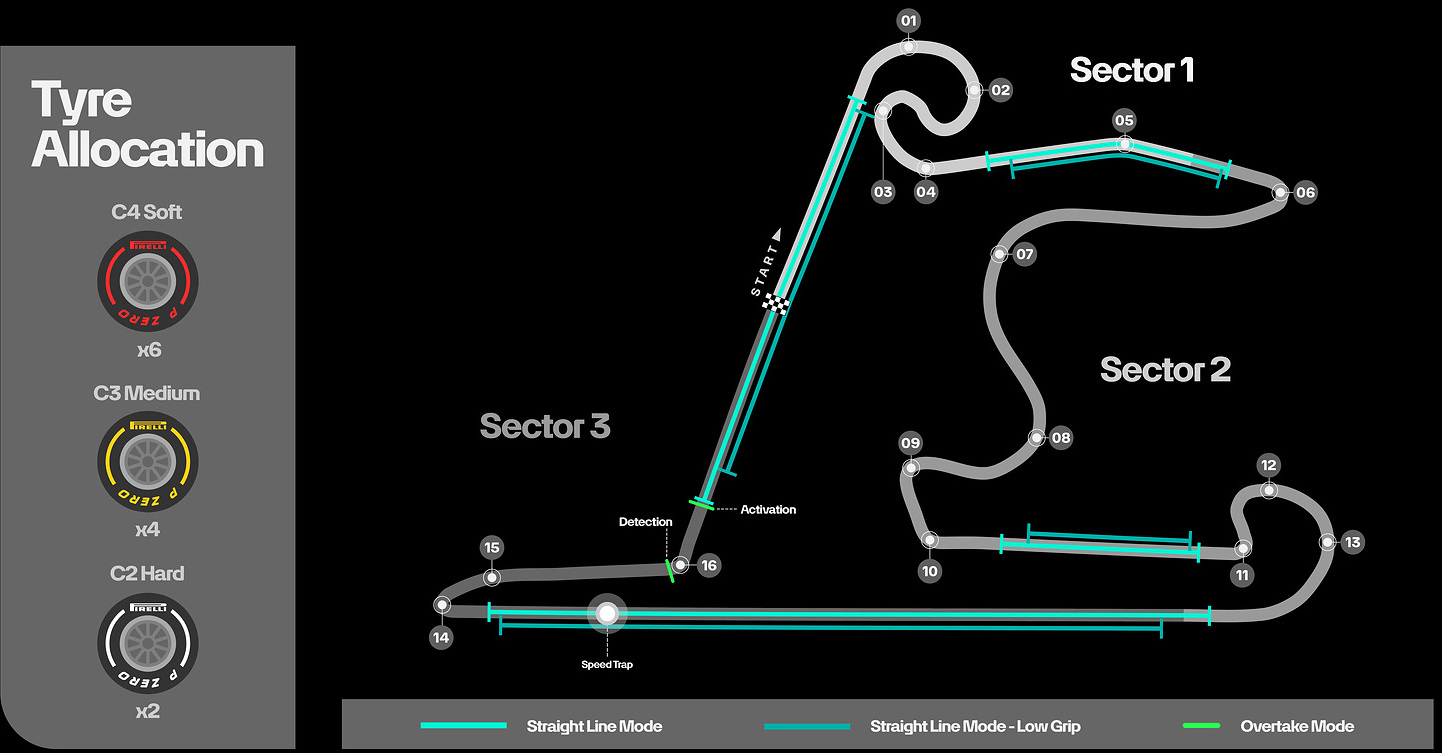 - Careful tire usage is required across four competitive sessions with a Sprint tire allocation of two hard, four medium and six soft tires.