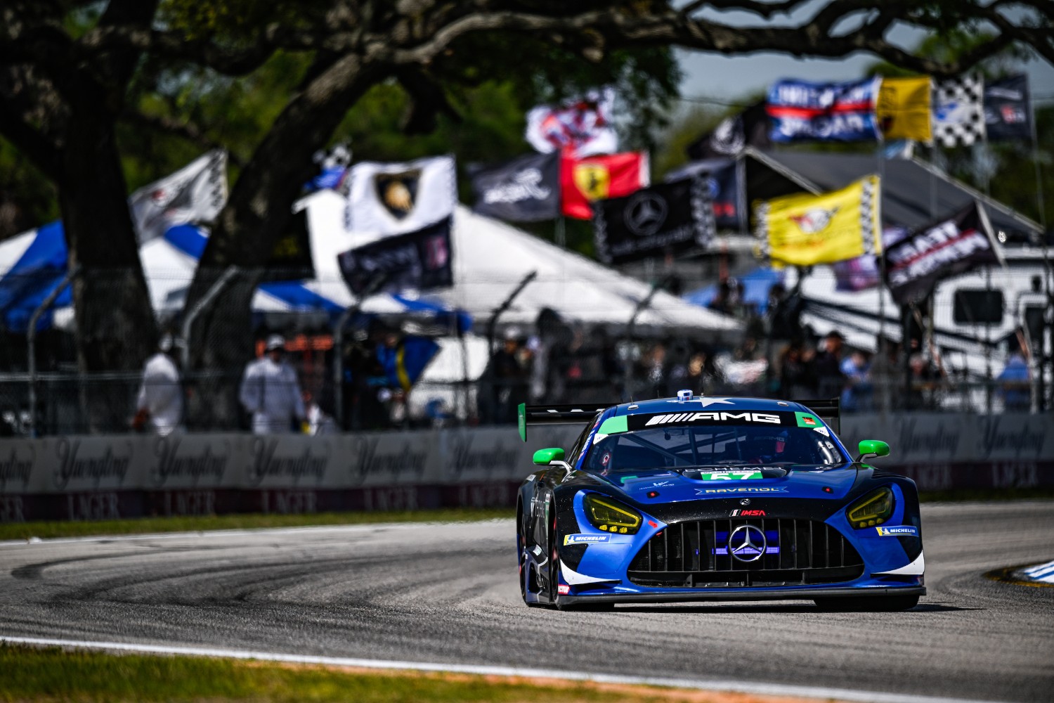 In the GT classes, Mercedes-AMG GT3 Evos dominated the production-based ranks, led by three GTD entries. Philip Ellis set the pace in the Rolex 24-winning No. 57 Winward Racing Mercedes-AMG, ahead of Scott Andrews in the Lone Star Racing example. Lorenzo Patrese placed third in the No. 34 Conquest Racing Ferrari 296 GT3 Evo.