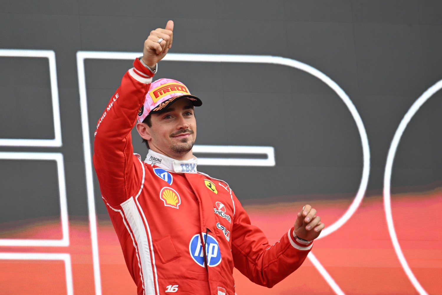 Third placed Charles Leclerc of Monaco and Scuderia Ferrari celebrates on the podium during the F1 Grand Prix of Japan at Suzuka Circuit on March 29, 2026 in Suzuka, Japan. (Photo by Sam Bagnall/Sutton Images for Pirelli)