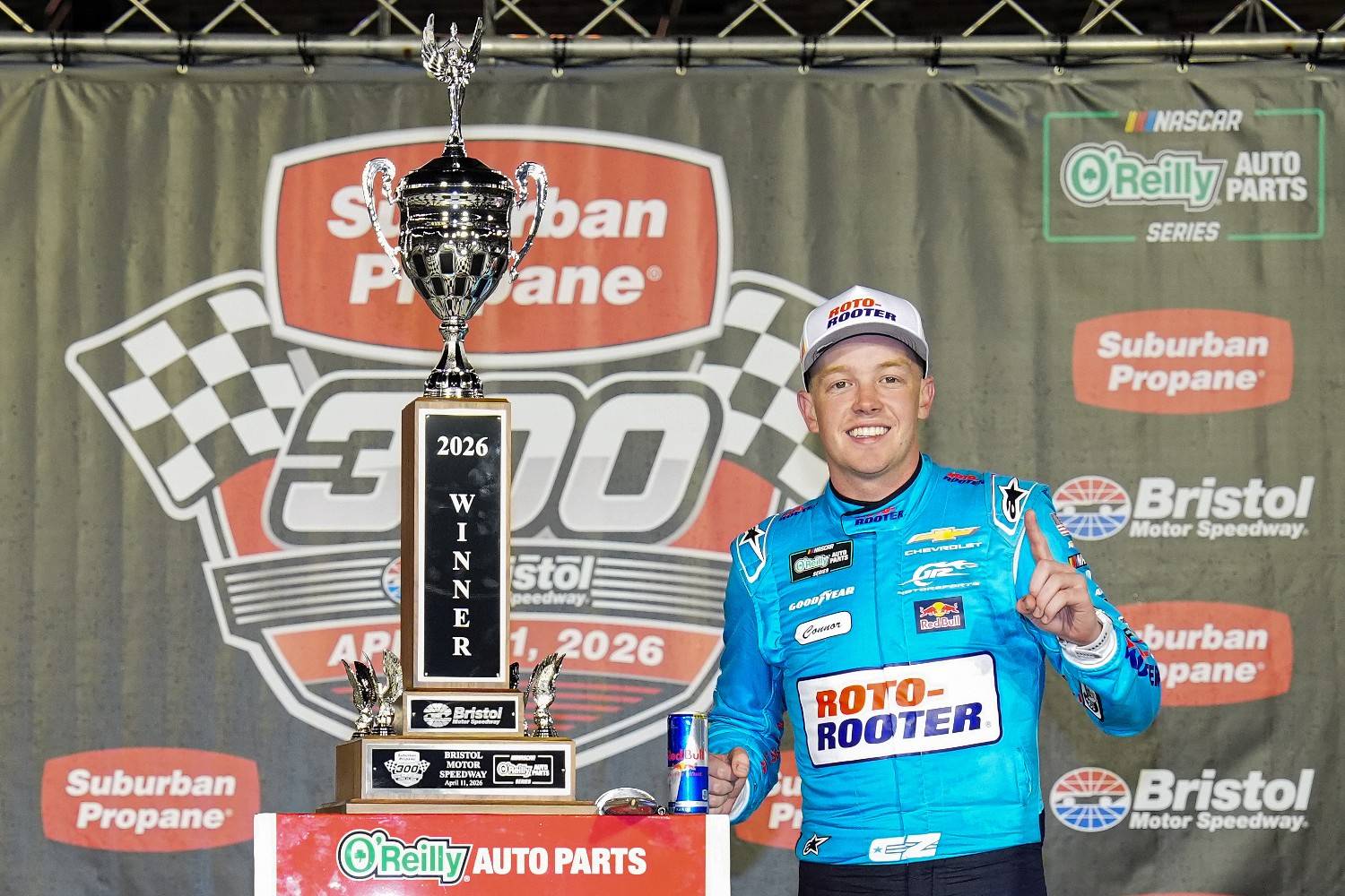 BRISTOL, Tenn. — Kyle Larson dominated nearly the entire race, but it was Connor Zilisch who delivered the upset Saturday night at Bristol Motor Speedway, holding off the Hendrick Motorsports star on older tires to capture the NASCAR O’Reilly Auto Parts Suburban Propane 300.